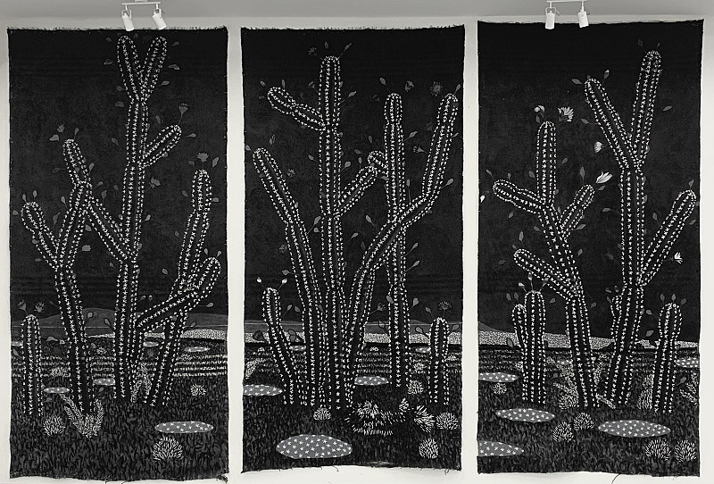 , FRANS THOKA , Paint, charcoal and wool on prison blankets