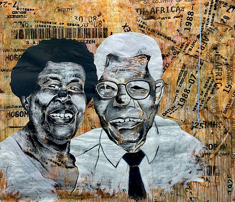 , RAMOTOANA MOKGOMME , Collage And Acrylic On Canvas