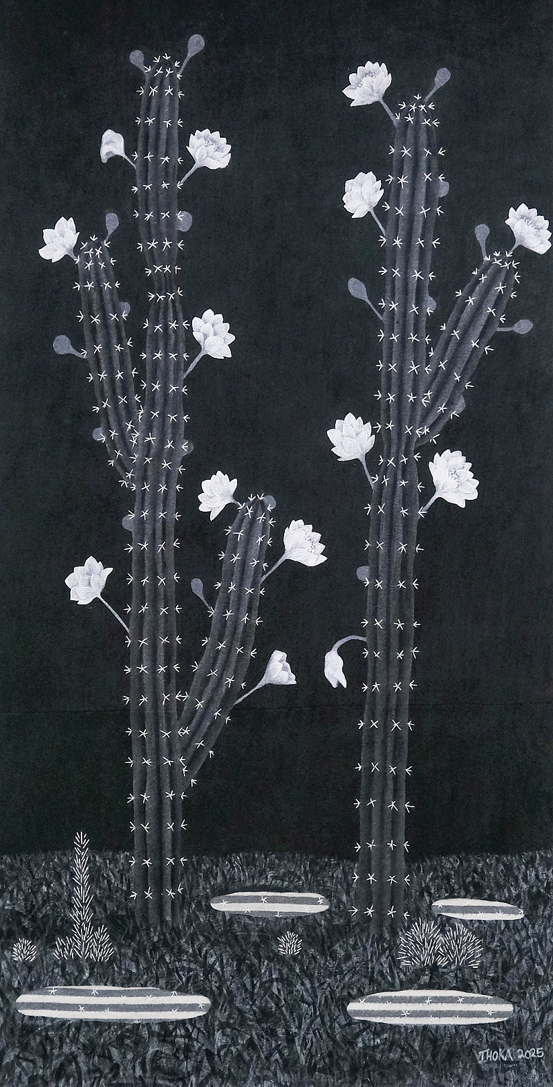 , FRANS THOKA , Paint, charcoal and wool on prison blankets