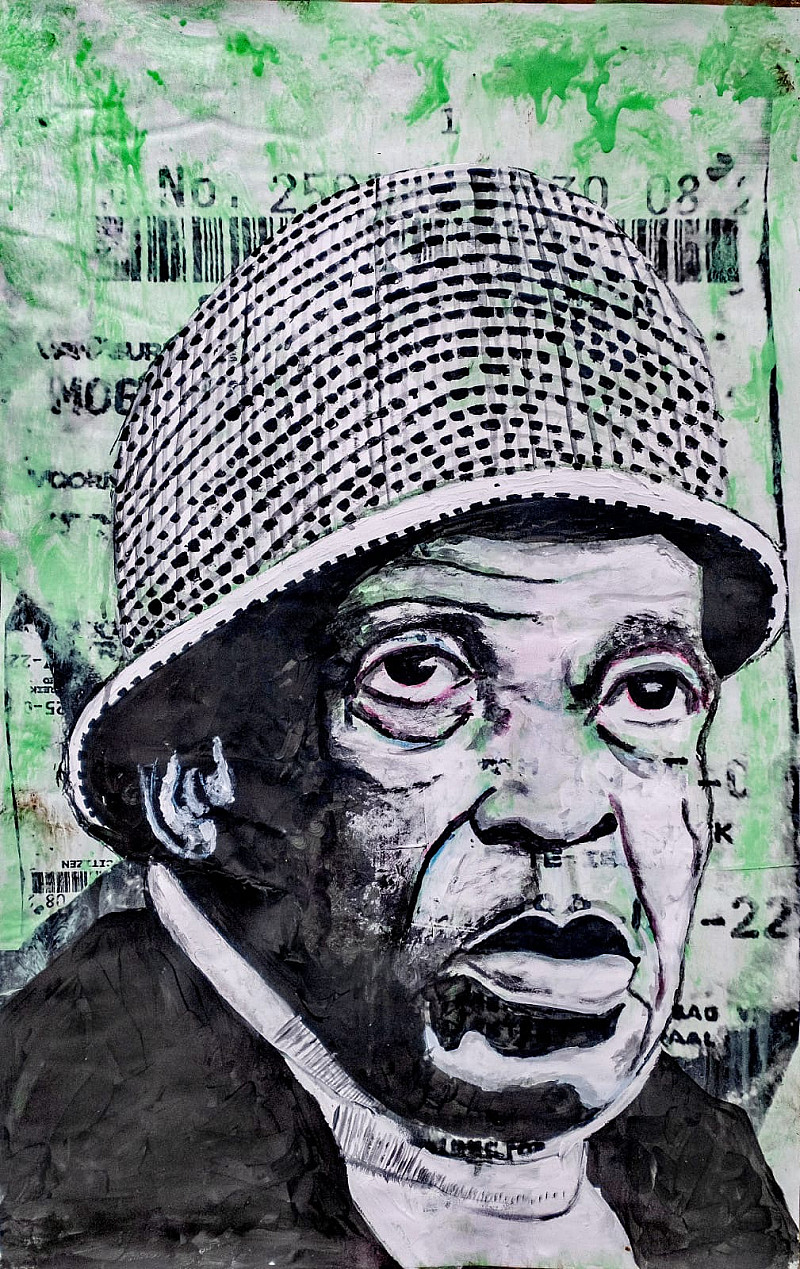 , RAMOTOANA MOKGOMME , Collage & Acrylic on brown paper