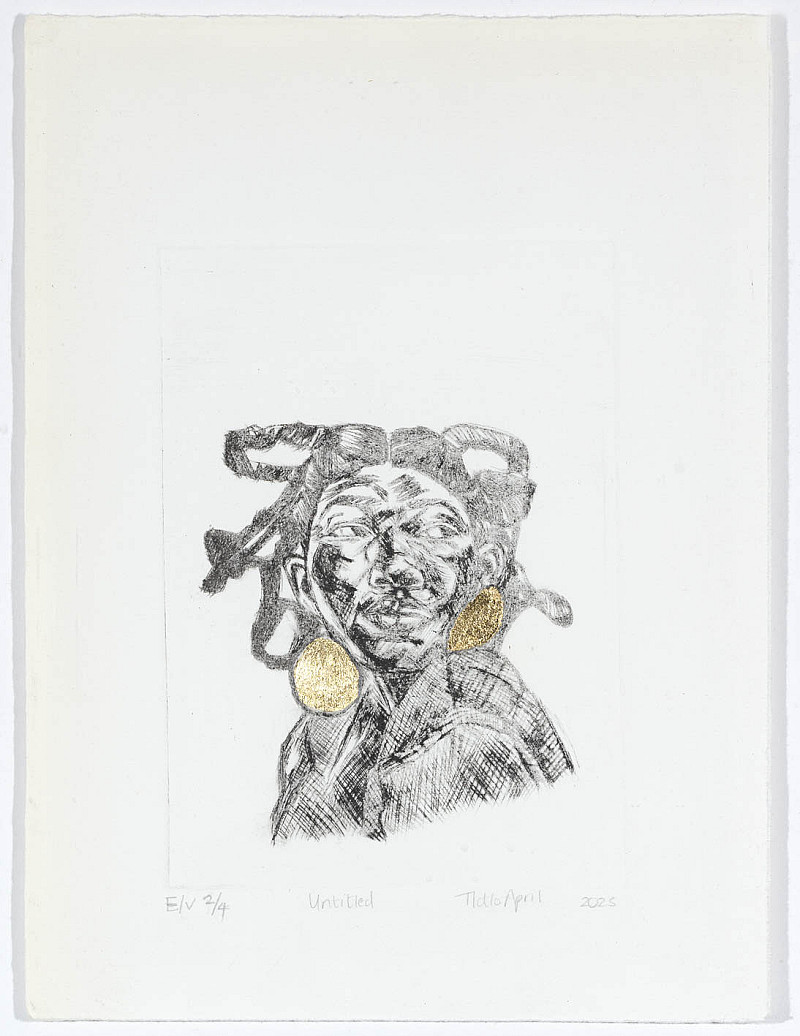 , TLOTLO THEMBEKA APRIL , Dry point and Gold Leaf on Fabriano